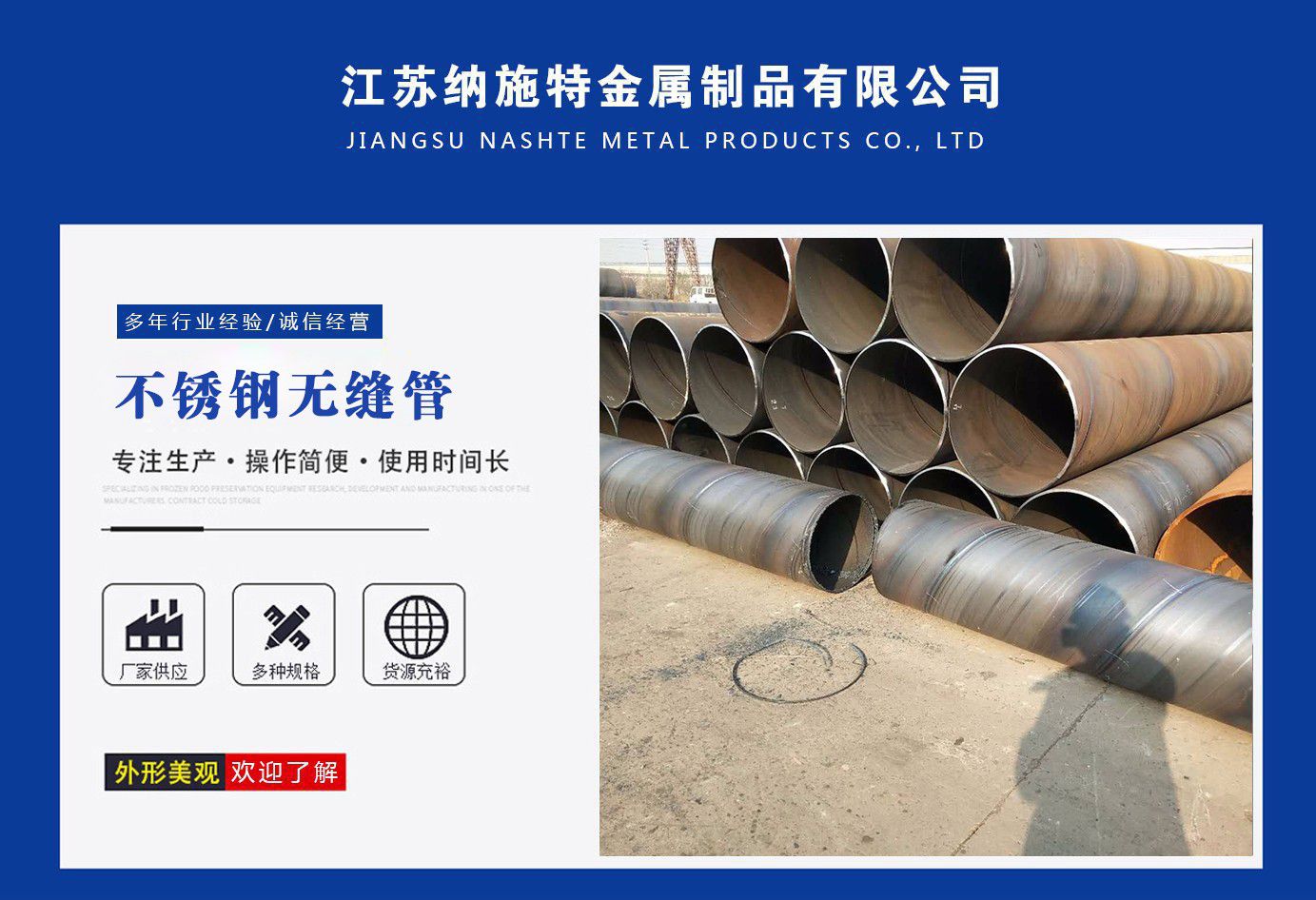 江蘇納施特金屬制品有限公司是一家集生產205不銹鋼無縫管,2507不銹鋼無縫管,316l不銹鋼焊管廠家,不銹鋼工業焊管廠家,厚壁無縫鋼管廠家等產品,公司庫存多規格齊全、質量保證。公司一貫以服務至上、質量至上、價格合理、客戶至上、讓利客戶、薄利多銷為原則,誠實守信為宗旨?! 」颈小皟炠|的品質和服務創造企業品牌”之宗旨,與國內外多家知名廠商建立了長期穩定的合作伙伴關系,精心匯聚各廠商的品牌產品,實現了資源互補,以適應市場的不同需求,協助廣大廠商提高自身的競爭力,是您的理想合作伙伴?! 」鞠聦伲簶I務部、財務部、快運部、運輸部、倉儲部、加工部、(自備貨車、吊車、行車、自動切割、半成品)免費為用戶提供裝卸等一條龍服務。保證用戶利益、互惠互利做生意、誠心誠意交朋友?! 》粘兄Z:提供優質的不銹鋼及有關產品,遵守道德標準,努力提供獨特的產品和高水平服務?! ≠|量承諾:隨時為客戶提供產品和服務,充分領會客戶要求,盡職盡責,永無例外,竭盡全力,持續發展?! 」颈校骸邦櫩椭辽?,銳意進取”的經營理念,堅持“客戶至上”的原則為廣大客戶提供優質的服務?! ≡肝覀児竞蜕鐣鹘缤省⒅T位朋友、尊貴的各位客戶攜手并進,共同發展,同繪新世紀的宏偉藍圖! 公司宗旨:優質的品質和服務創造企業品牌。 經營理念:以...